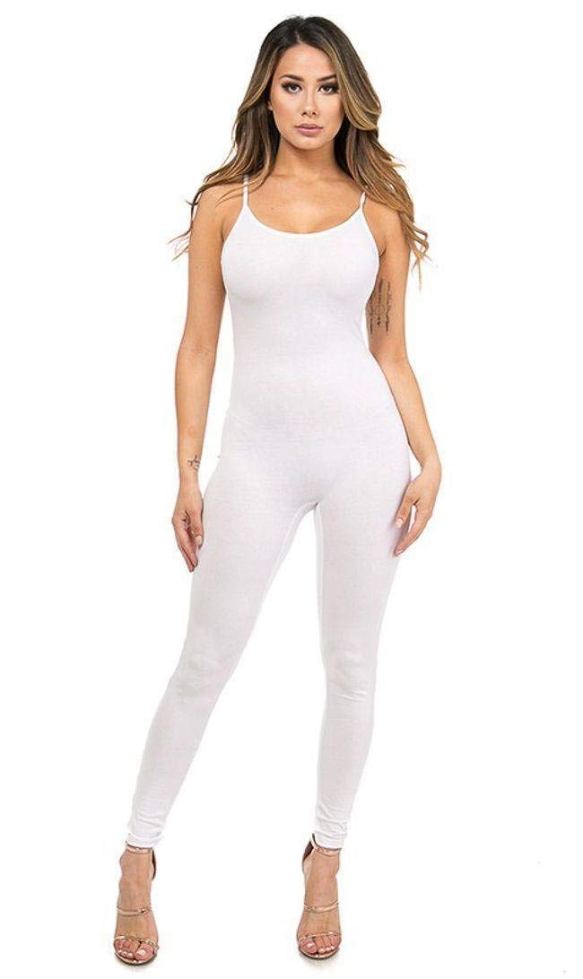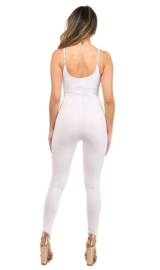 Omer White Spandex Cotton Tank Jumpsuit Catsuit Unitard