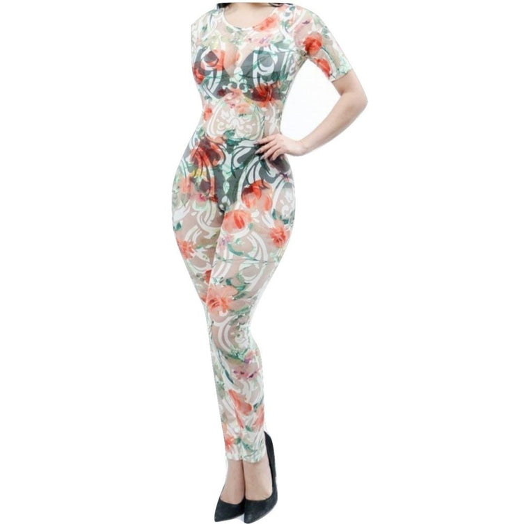 Mekiza White Floral Mesh Jumpsuit