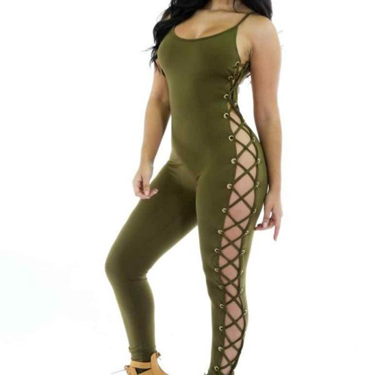 Olive Lace Up Jumpsuit Catsuit