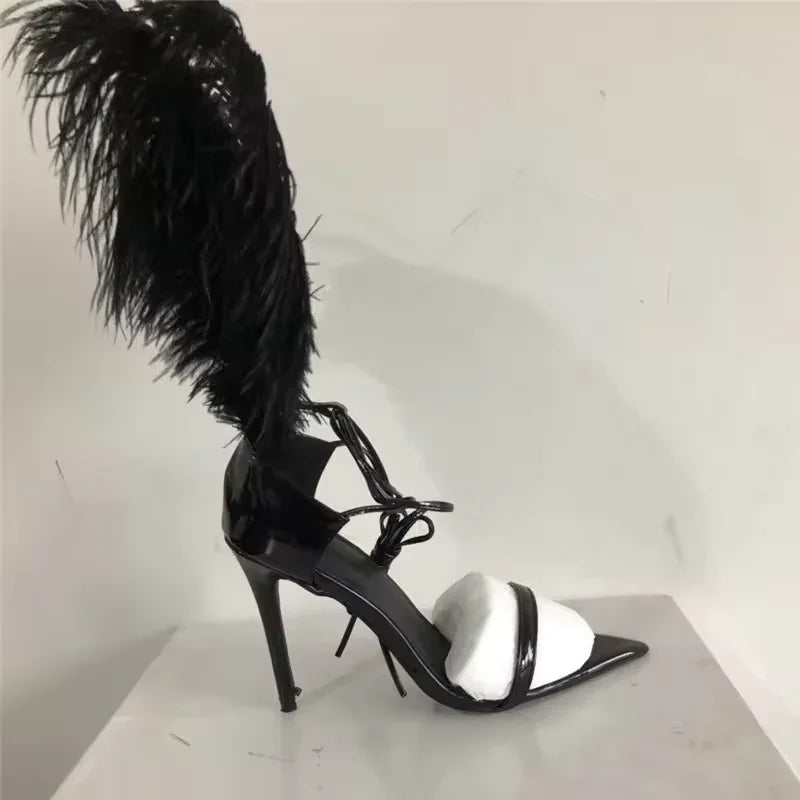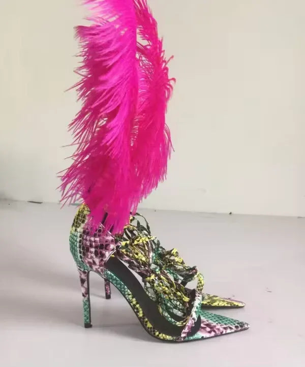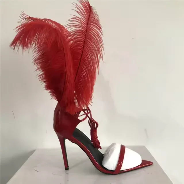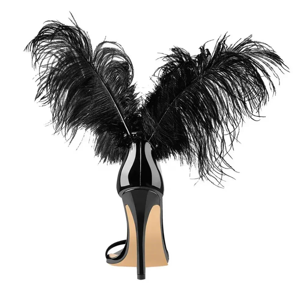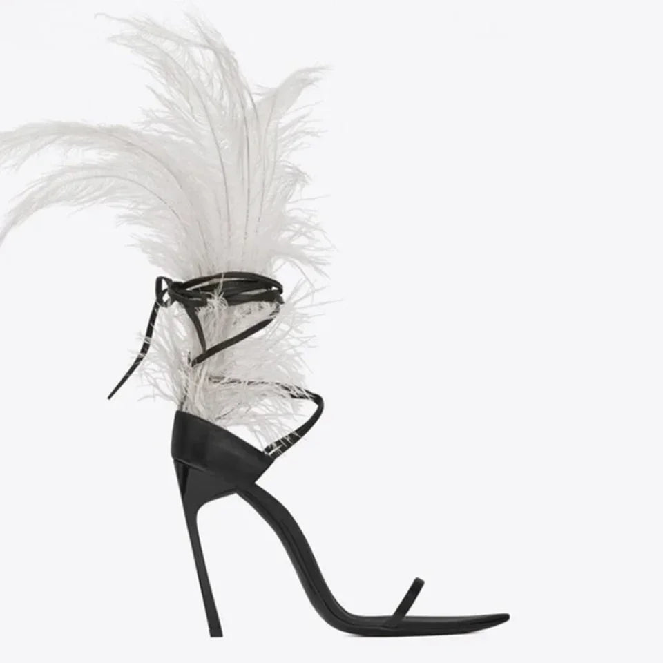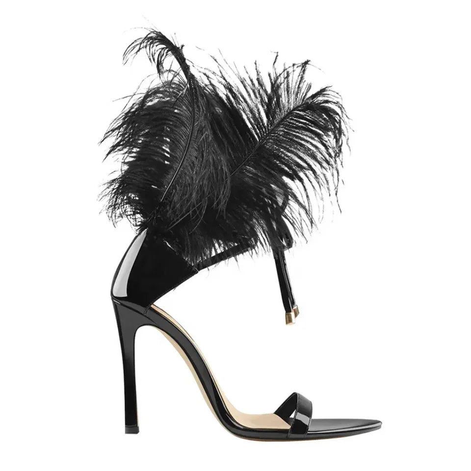 Feather Strappy Heel Sandals- PrimaDND