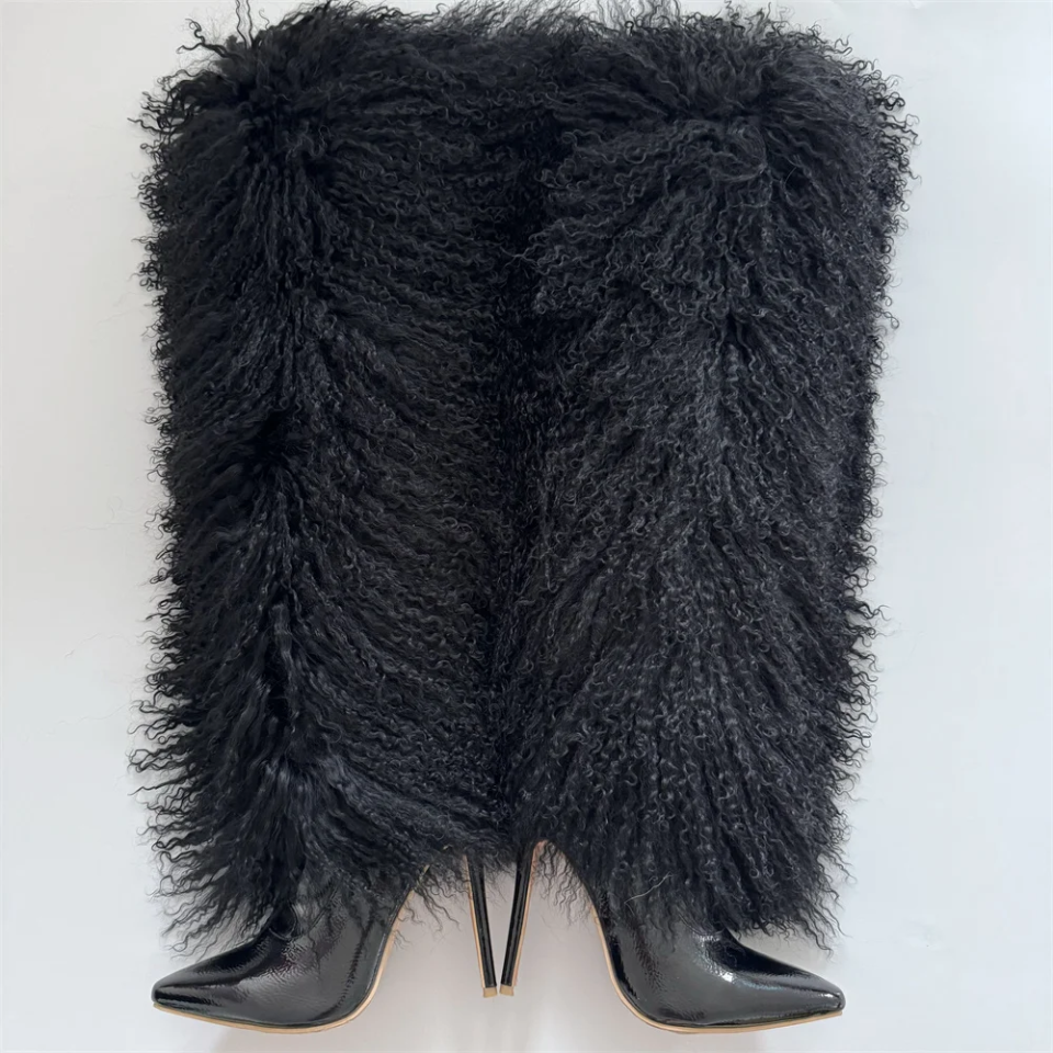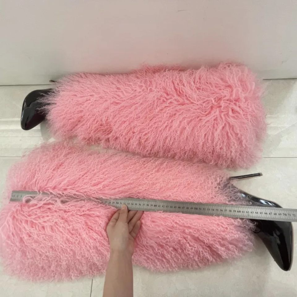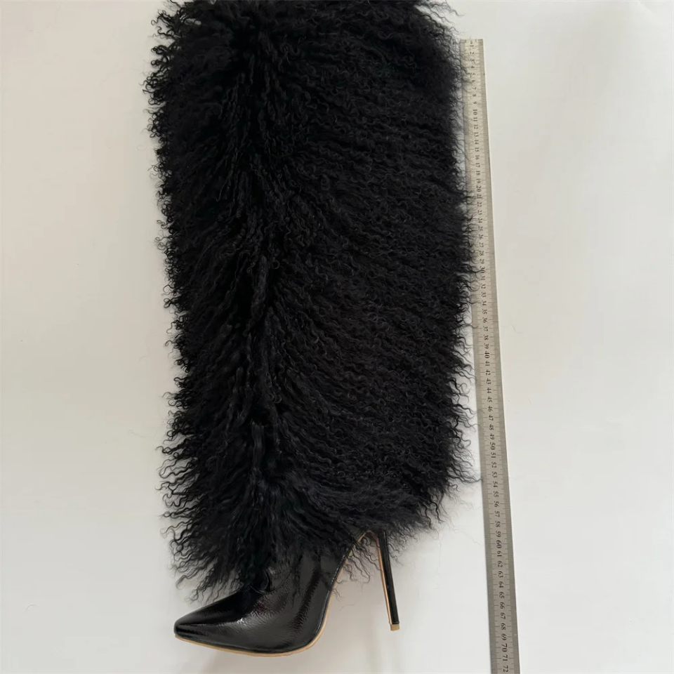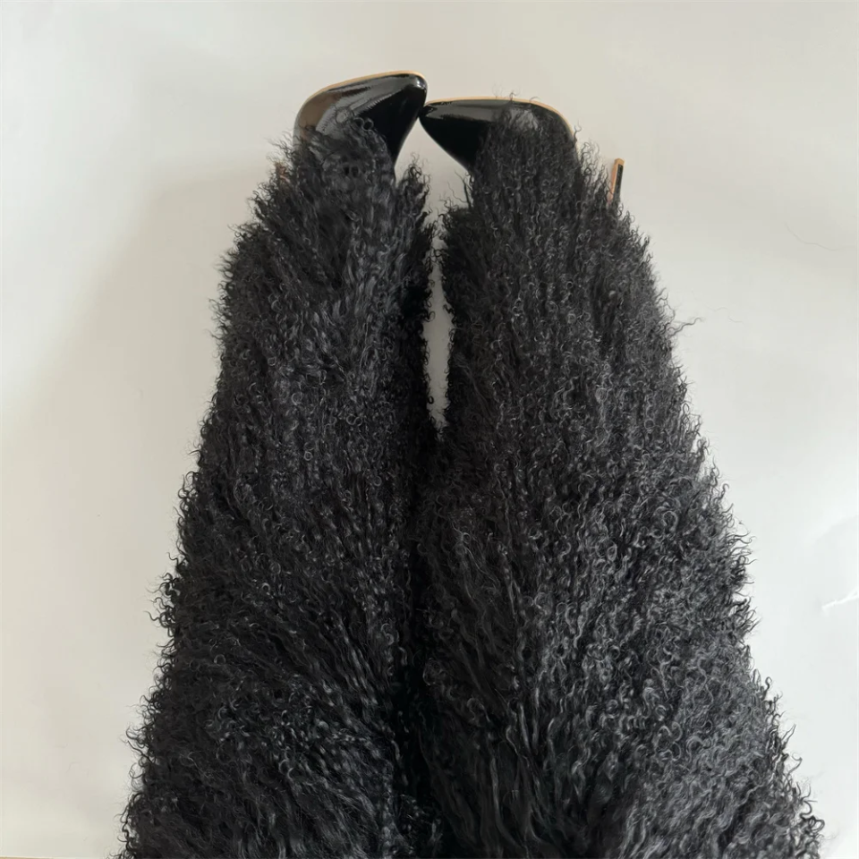 These boots are designed to make a statement. The plush faux shearling lining will keep you cozy on even the coldest days, while the thigh-high silhouette adds a touch of drama and sophistication. Perfect for pairing with everything from skinny jeans and sweaters to mini skirts and dresses, these boots are a versatile addition to your winter wardrobe.