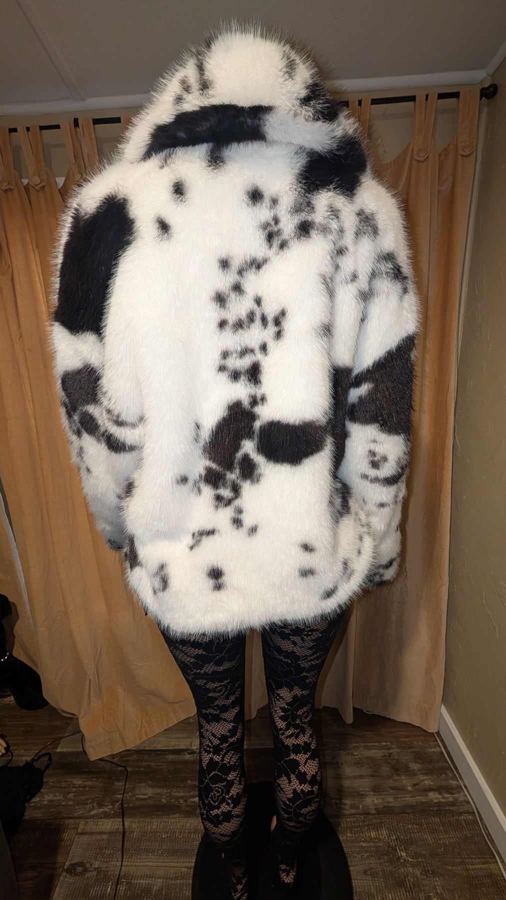 Cow Print Hip Length Faux Fur Coat Jacket- By Prima DND