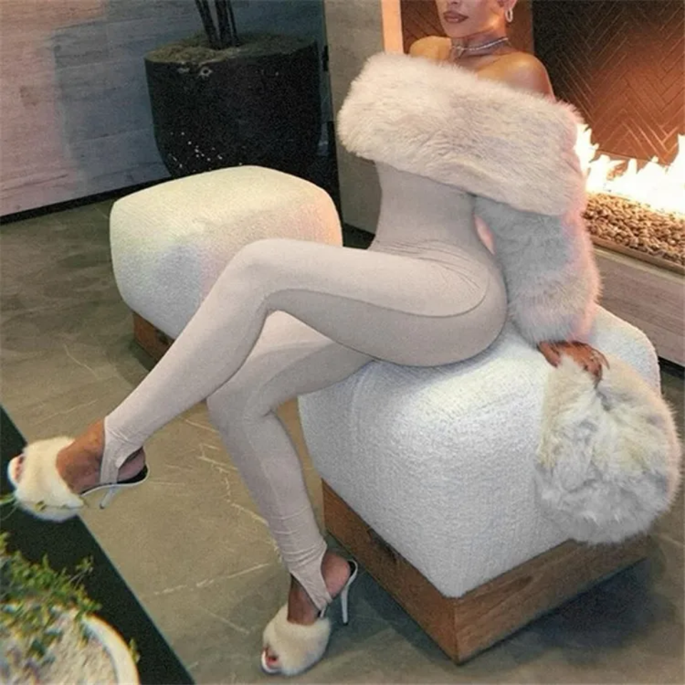 Off Shoulder Faux Fur Jumpsuit 3- Prima Dons and Donnas