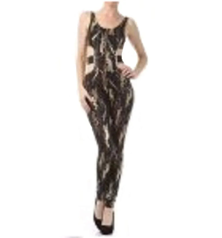 Sleeveless sequined Romper with cutout sides back low back and front zipper