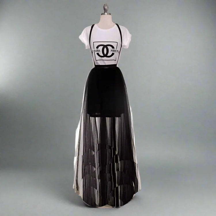 The Tulle Skirt with Suspenders from Prima Dons and Donnas is a stylish maxi tulle skirt suspenders design that delivers a princess style skirt perfect for any occasion. This layered tulle skirt features three airy layers that create a flared net skirt silhouette, offering a light and comfortable party skirt ideal for summer wear. The adjustable suspender dress detail ensures a perfect fit, combining fashion and function seamlessly.