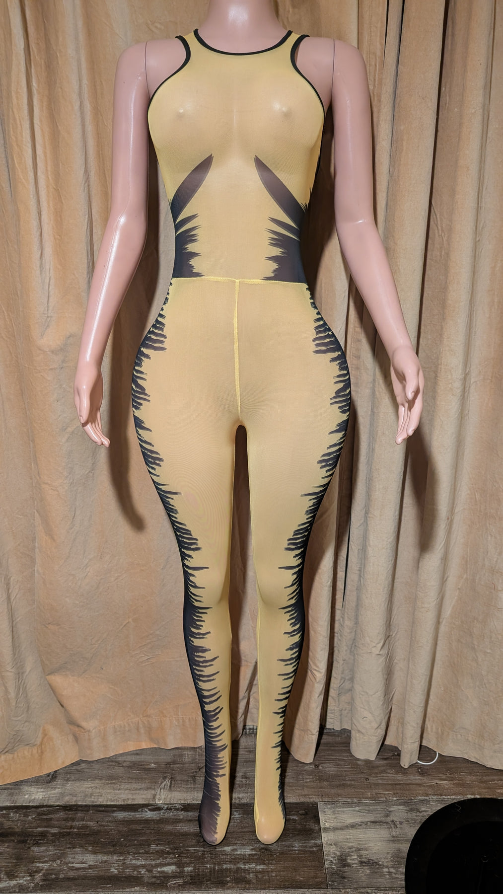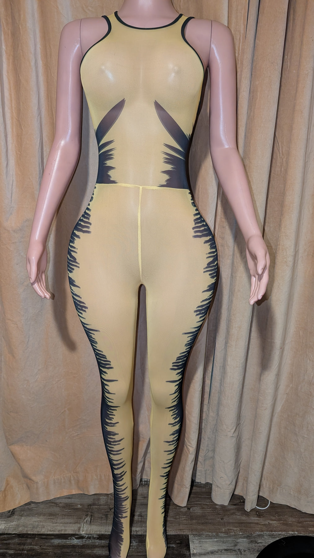 Yellow Mesh Jumpsuit Catsuit
