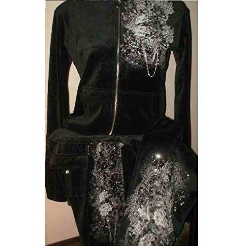 80% cotton 20% poly Chains hanging from the suit. Draw string on pants