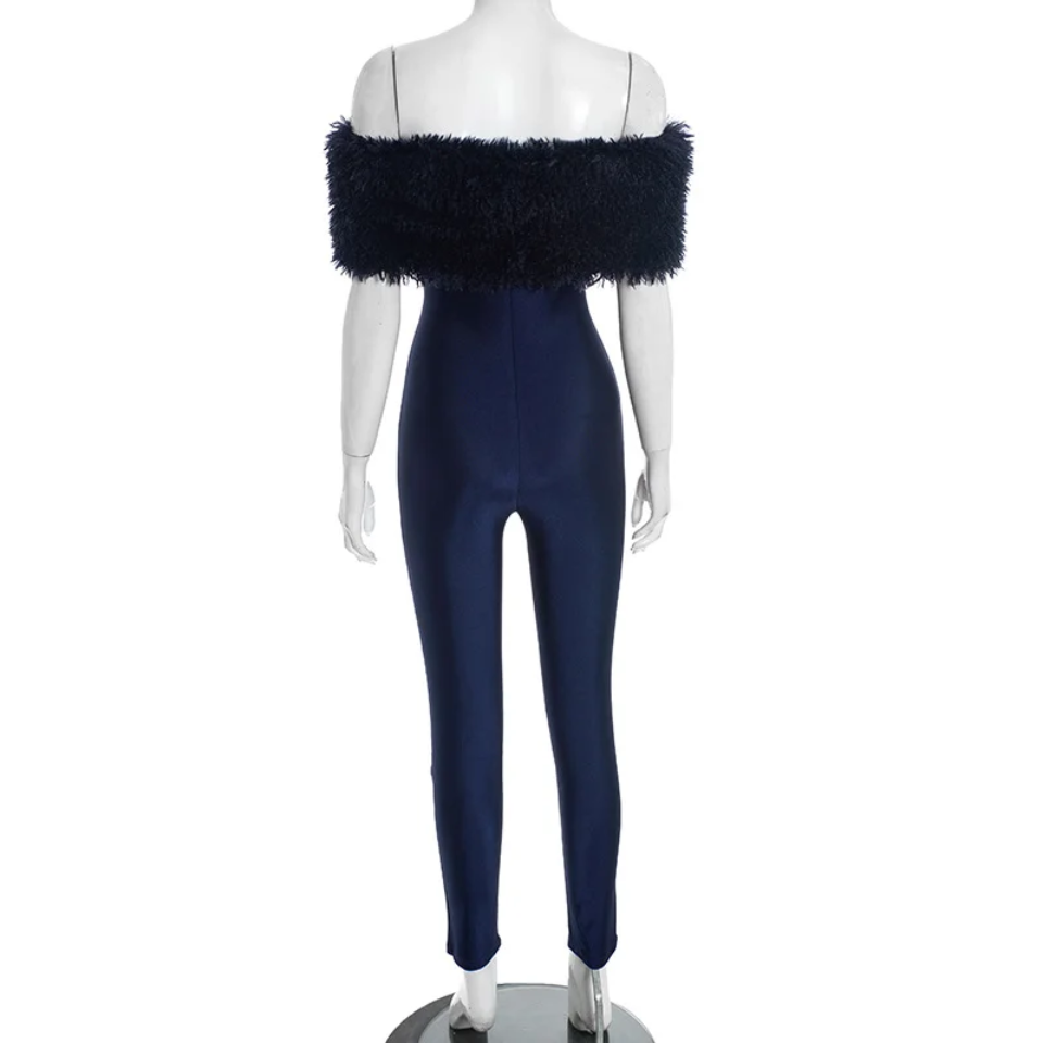 Off Shoulder Faux Fur Jumpsuit 2- Prima Dons and Donnas