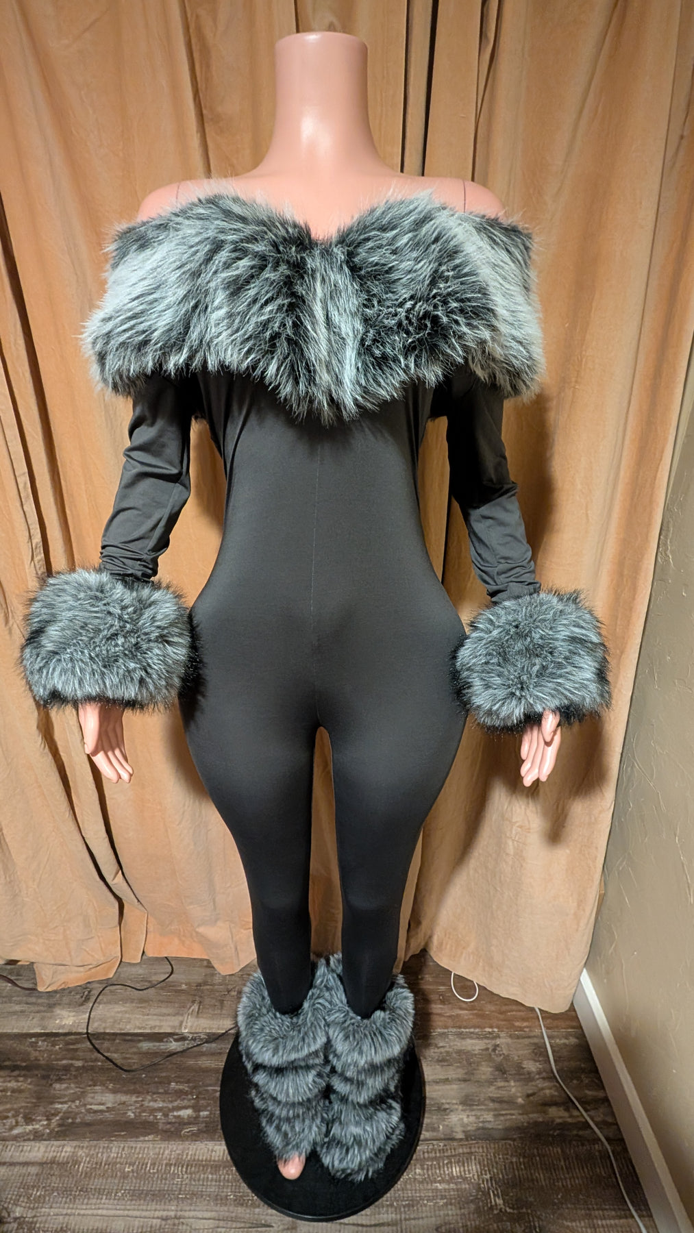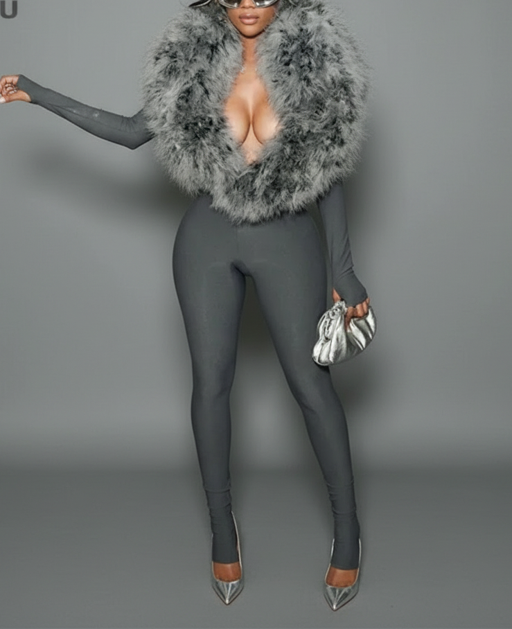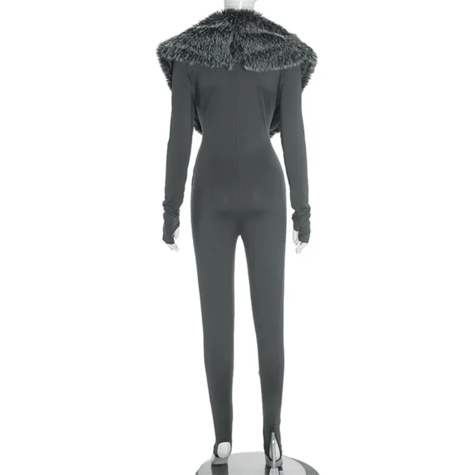 V Neck Faux Fur Jumpsuit 2- Prima Dons and Donnas