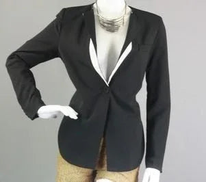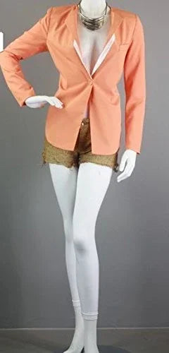 Other sizes and colors available. Please email us for more information Hot blazerSHORTER BACK contrast backside lapels trim on this lightweight tux jacket.Has one button closure and faux welt pocket. Featuring a padding adds structure to the shoulders and buttoned cuffs finish the long sleeves.fully lined